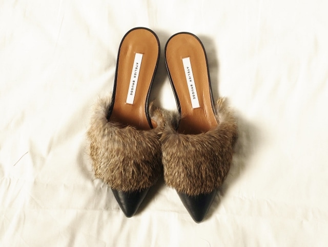 atelier brugge(アトリエブルージュ)のラビットファーローヒールミュール ¥20,304(税込)の紹介です。