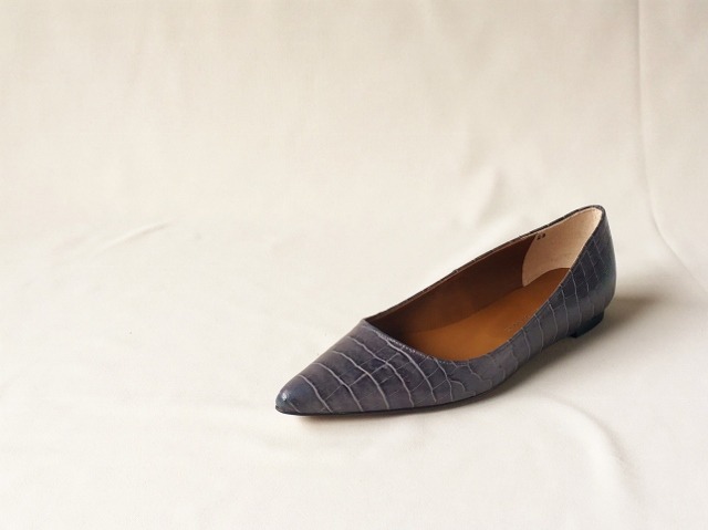 程よいポインテッドトゥとクロコの型押しが、大人っぽく上品。