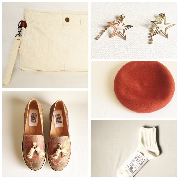 カラーリングも、モノトーンやブラウン系でも会いますし、色を使いたいならシューズで使ってるグリーンなどを投入しても相性がいいです。
