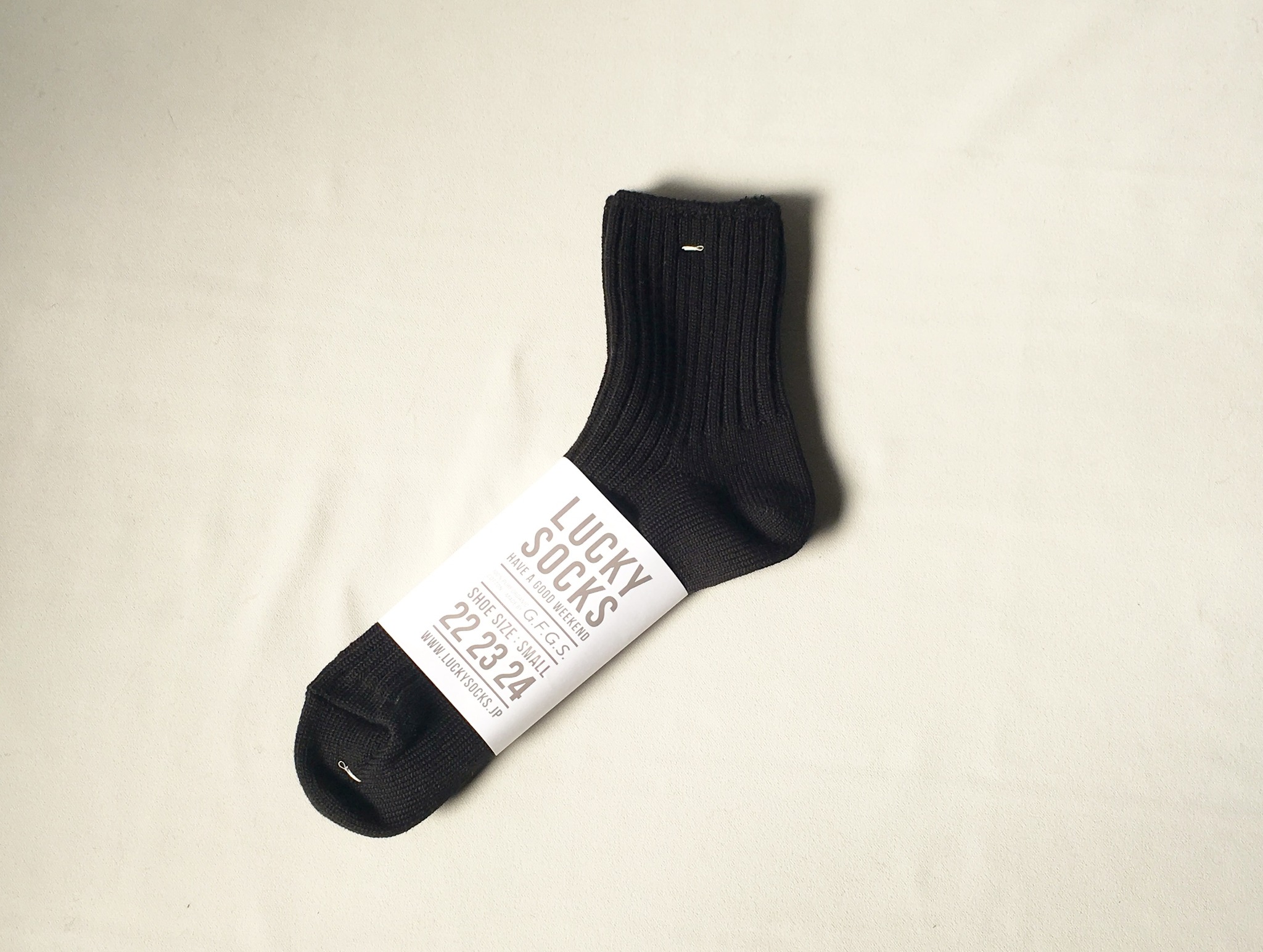 ソックスも、定番のブラックリブ編みできちんと感を出します。