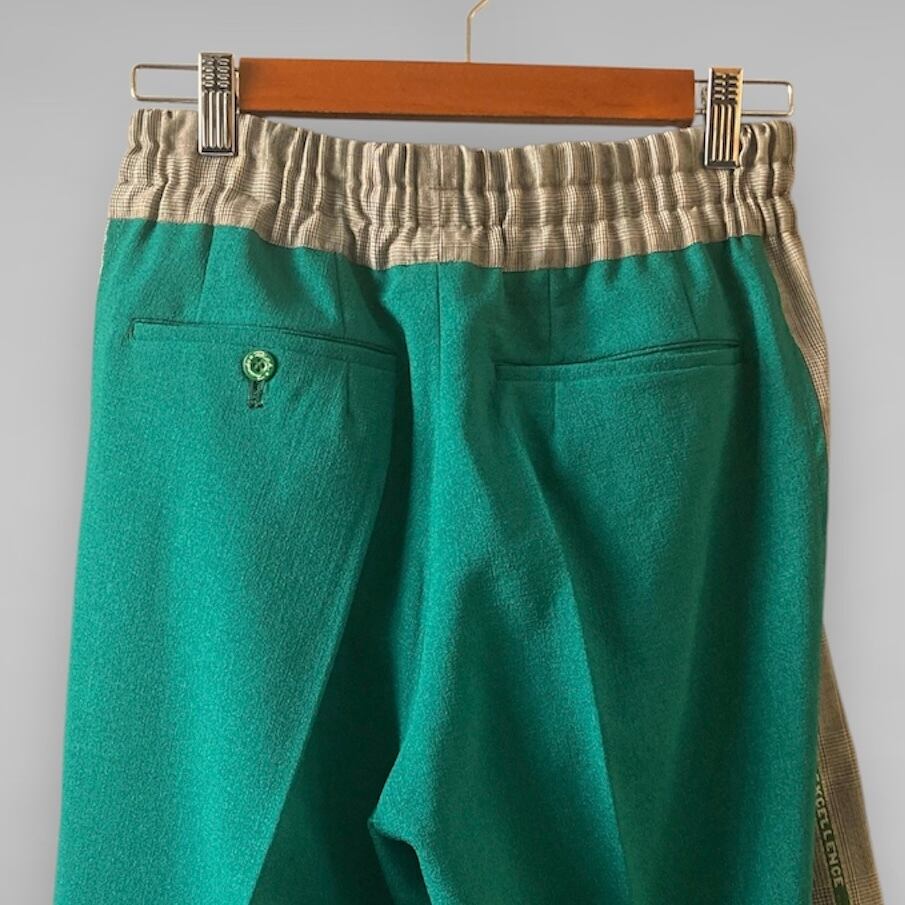 ZOZOTTE リメイクワイドパンツ/トラックパンツ風/サイドロゴ入り/グリーン×グレンチェック柄