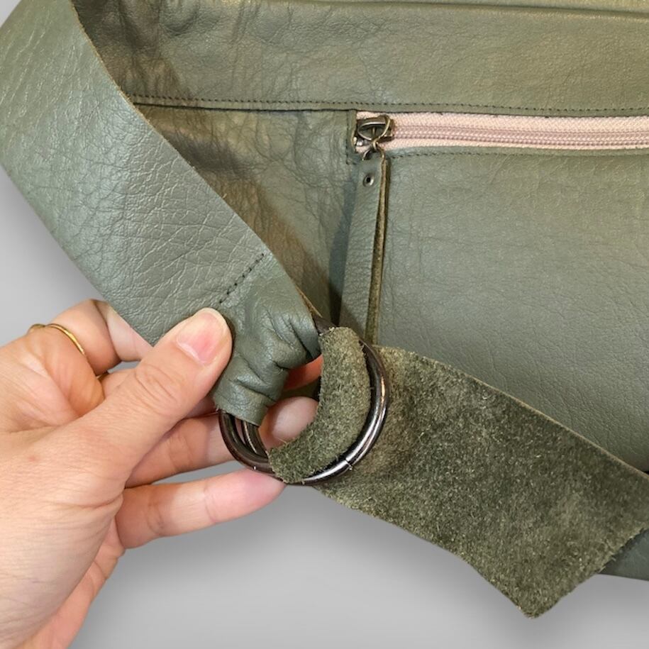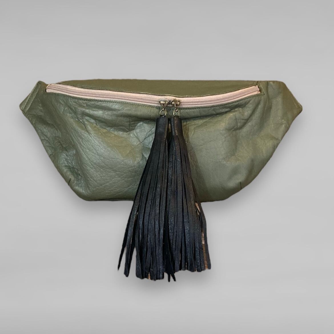 ZOZOTTE 2wayレザーウエストバッグ/カーキ/フリンジ付き/ボディバッグ