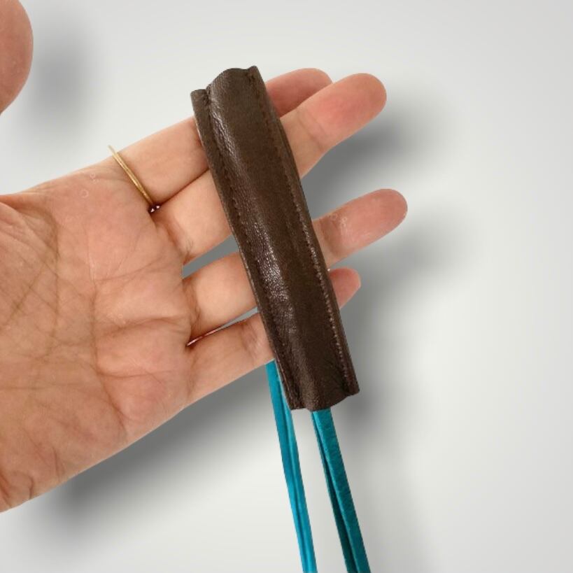 とても柔らかくしなやかな革端材を使用し、ひとつずつ手作業で作った1点物です。
