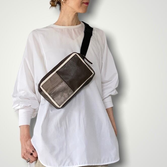 ZOZOTTE patchwork leather waistbag/パッチワークレザーウエストバッグ/ブラウン系