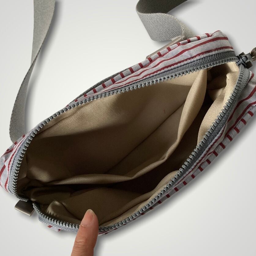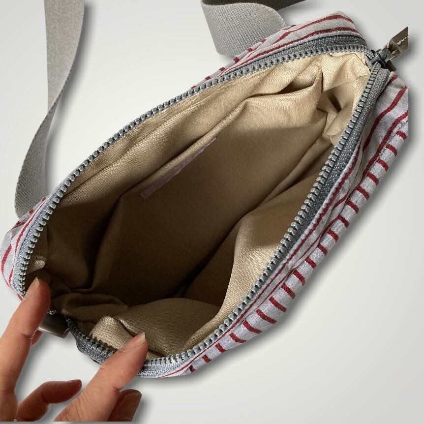 ZOZOTTE stripe waistbag/ストライプウエストバッグ/グレー&ワイン