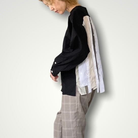 ZOZOTTE remake back patchwork shirt / リメイク 背中パッチワーク シャツ / ブラック系
