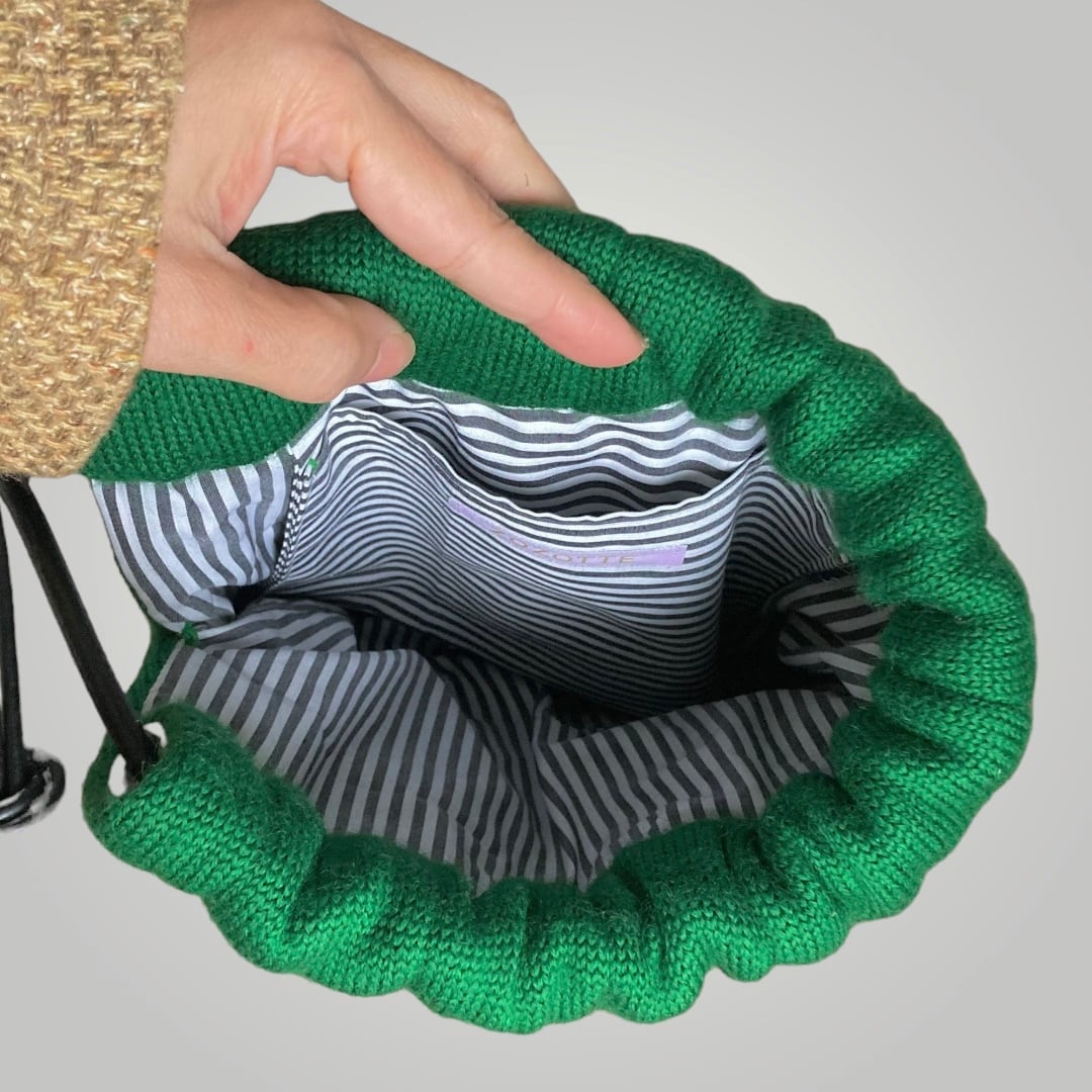 ZOZOTTE knit remake quilting drawstring bag/ニットリメイク キルティング巾着バッグ/グリーン系柄