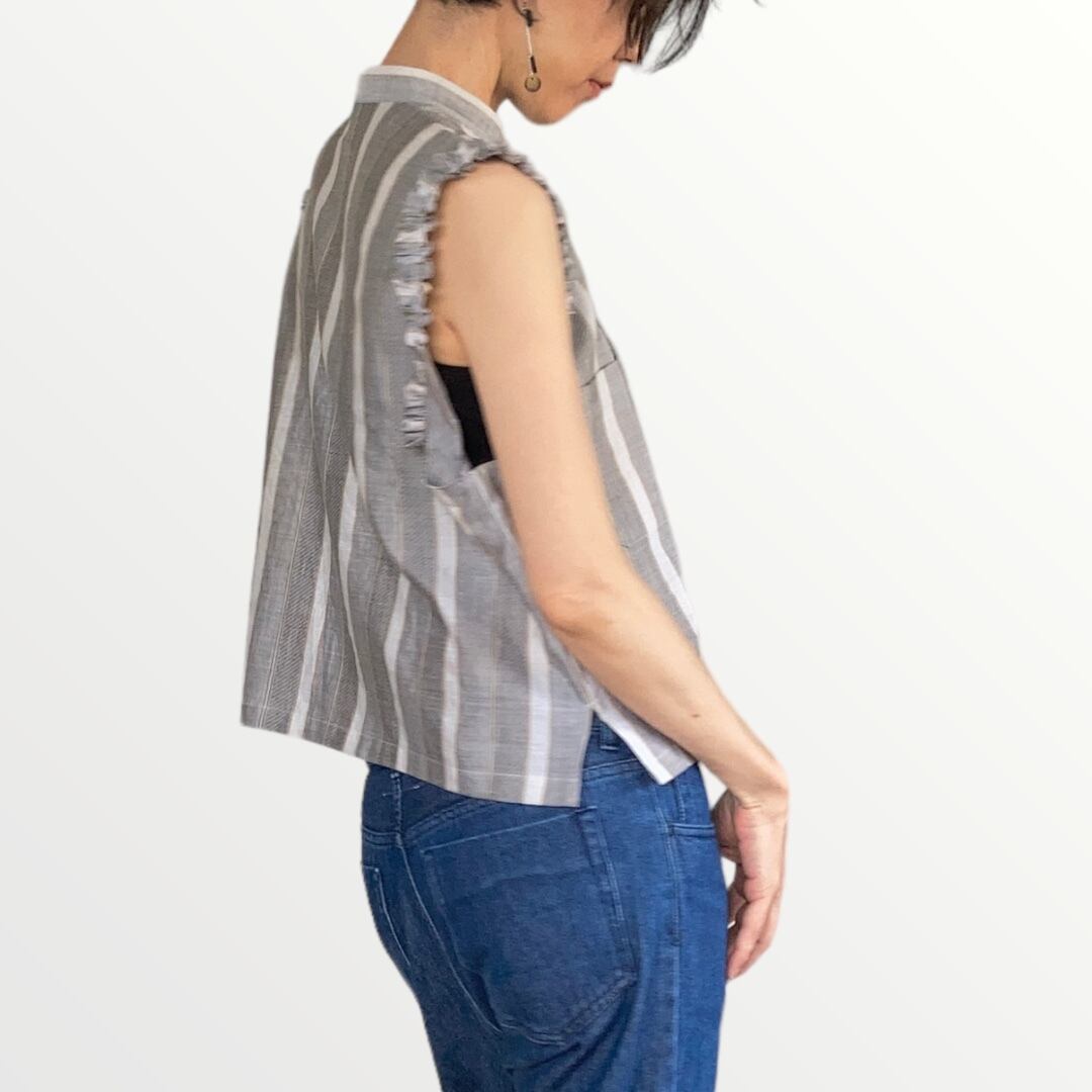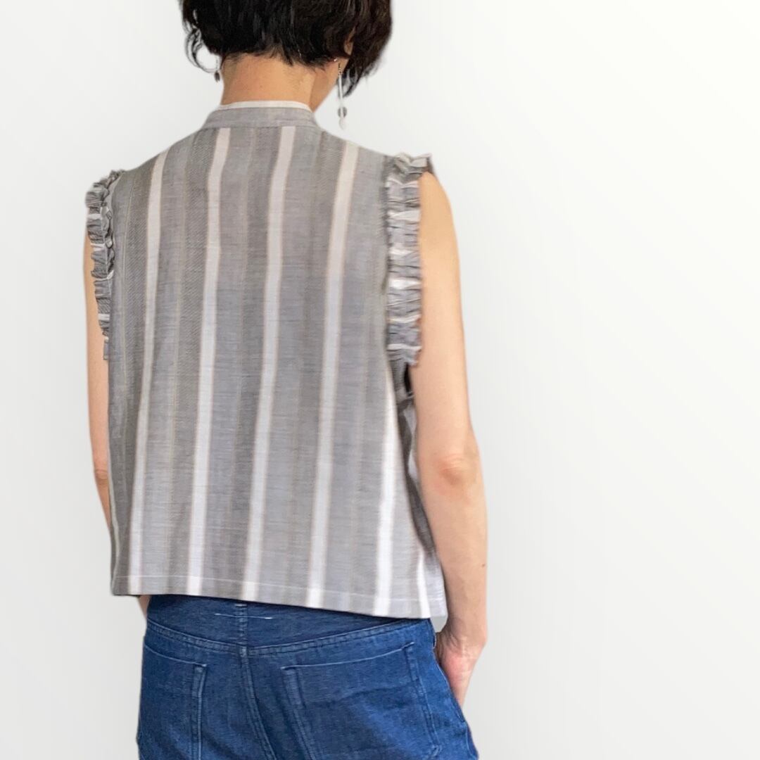 ZOZOTTE remake sleeveless frilly blouse/リメイク ノースリーブフリル付きブラウス/グレー系ストライプ柄