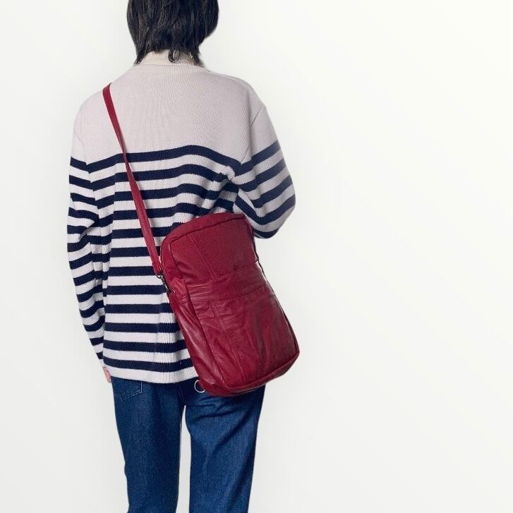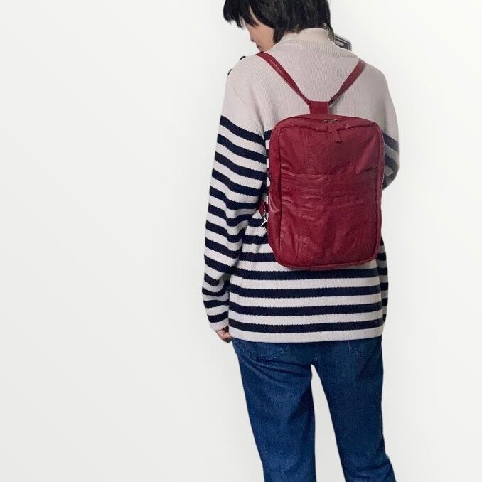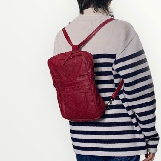 ZOZOTTE リメイク/レザーリュック&ショルダー2wayバッグ/レッド