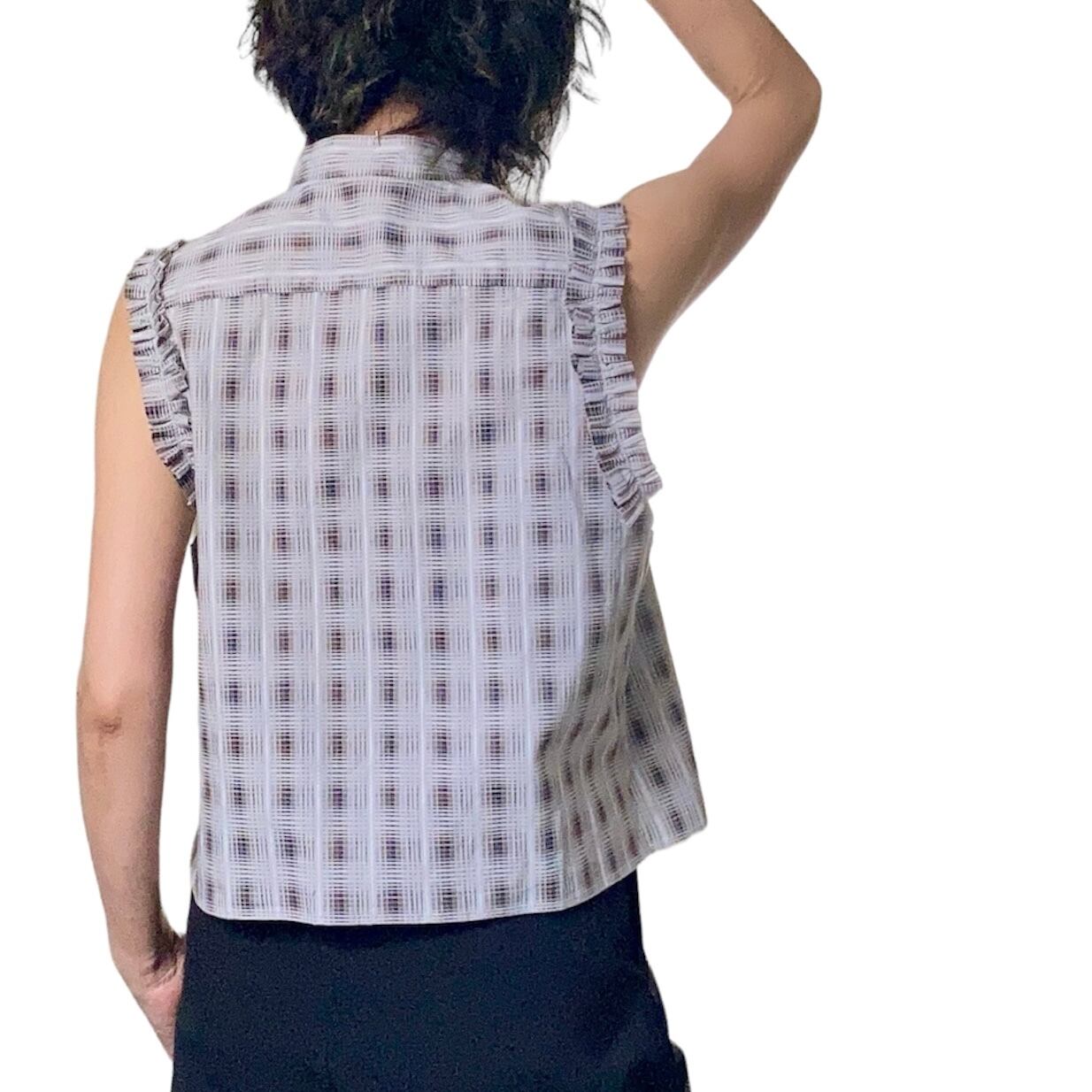 ZOZOTTE リメイク ノースリーブフリル付きブラウス/グレー系柄