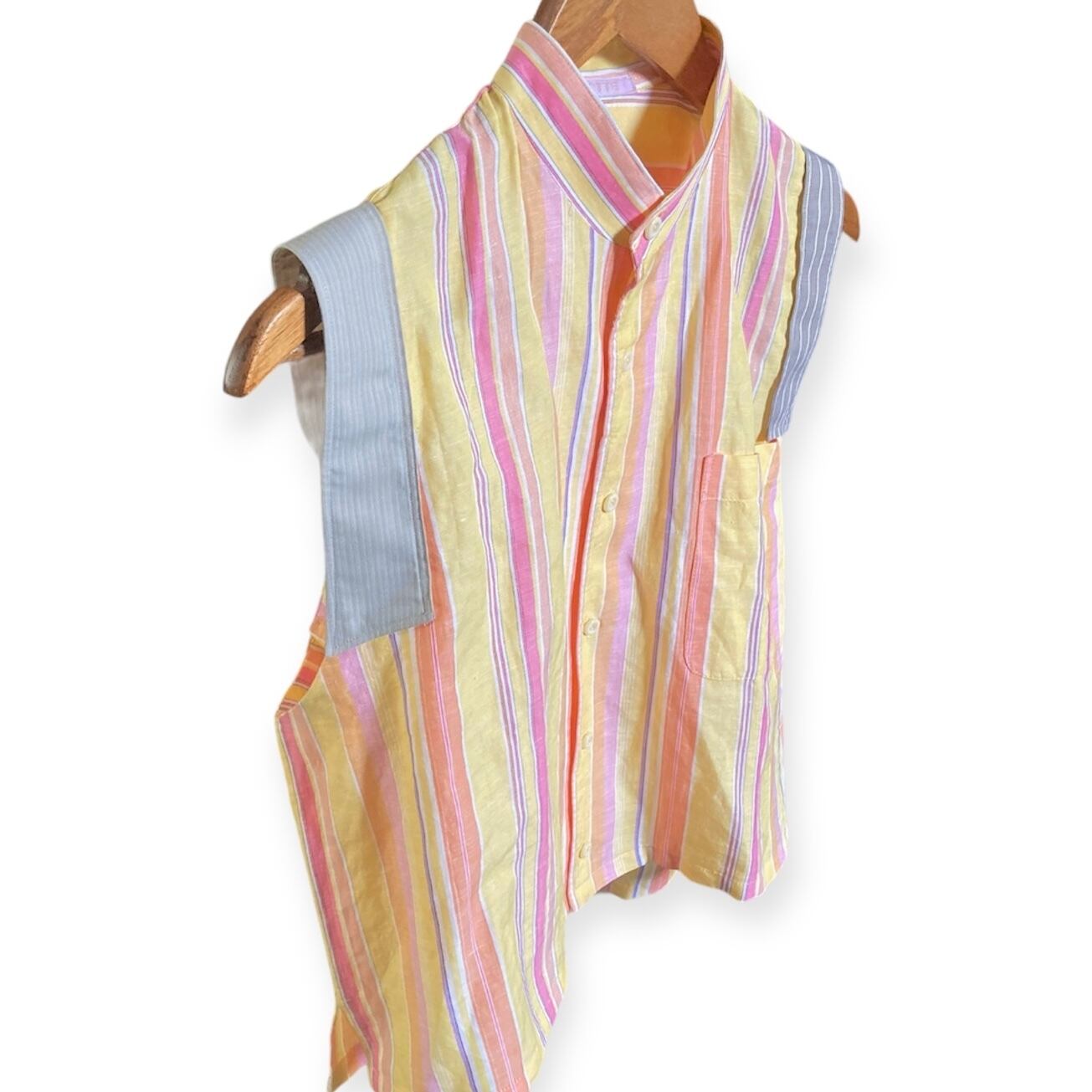 ZOZOTTE リメイク ノースリーブ襟袖ブラウス/イエロー系ストライプ柄
