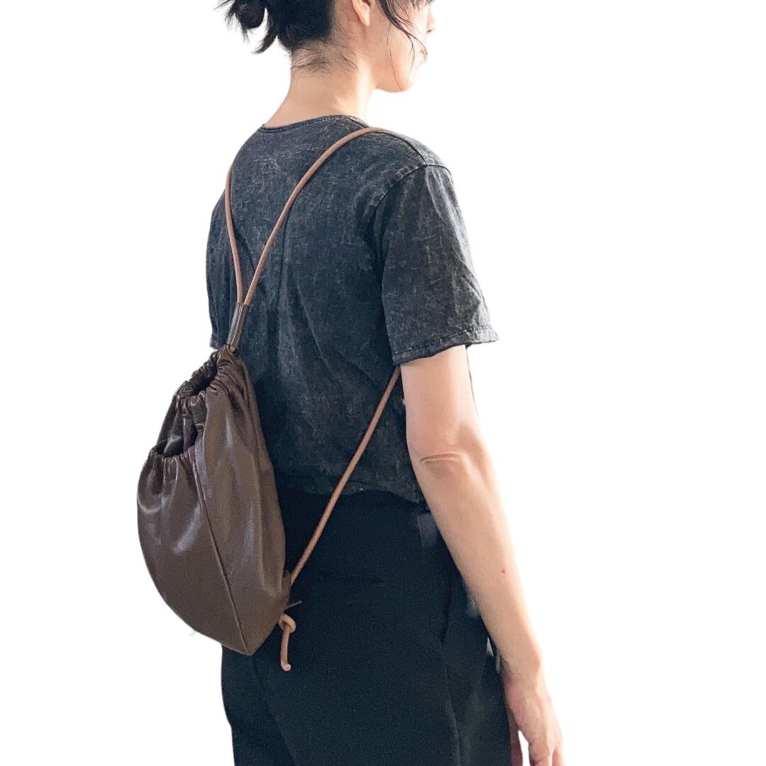 aquet shopのオリジナルブランド「ZOZOTTE」のレザー巾着リュック。