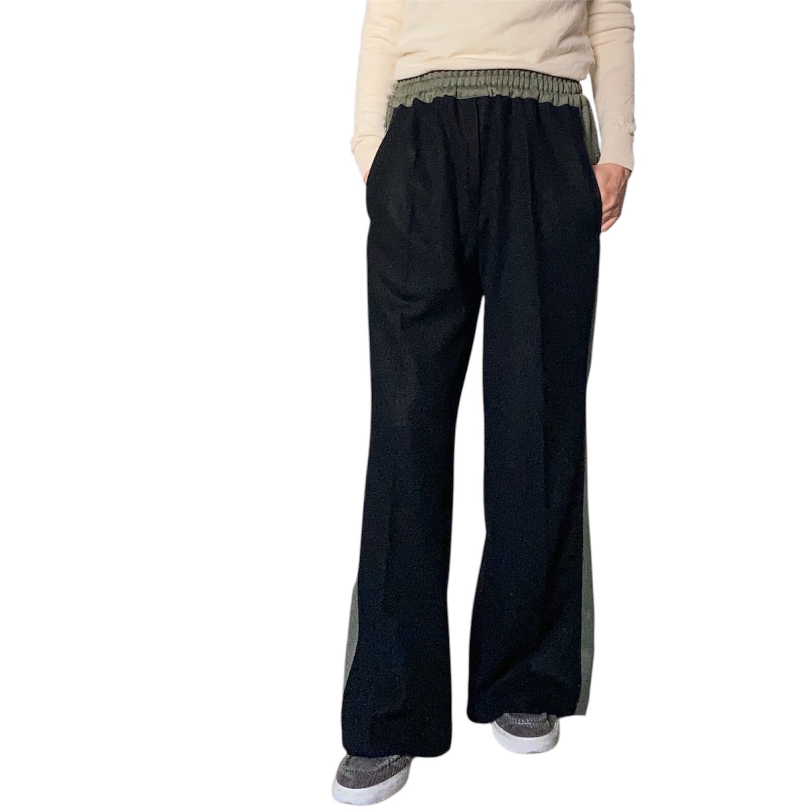 ZOZOTTE リメイクワイドパンツ/トラックパンツ風/サイドロゴ入り/ブラック×グリーン
